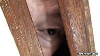Asian slut in the gloryhole getting fucked hard