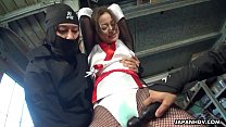 Japanese teen brunette, Mikuni Maisaki is masturbating at work, uncensored