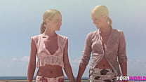Two Blondes Perform Cross Ass to Mouth on an Empty Beach