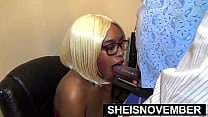 Nerdy Ebony Admin Sheisnovember Sucked Her Bosses Cock To Keep Her Secretary Job, With Her Cleavage Exposed, Sitting In Her Chair at her work desk Giving Aggressive Point Of View Blowjob With Intense Sensual Sucking By Msnovember