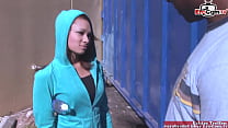 Skinny blonde with perfect tits picked up from a huge cock