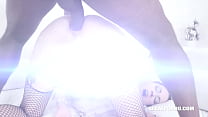 Black Ebony woman Sydnee Capri in Fishnet Dress get Interracial Anal and DP MMF Threesome by Black and White Guy