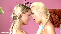 Sensual blondes Alix & Vanessa get dirty in the living room