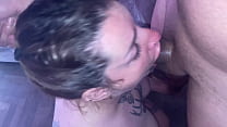 Blow job queen gives freak mob media a taste of Devils Throat til he cums on her Face