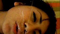 Brasileira chupa pau e fica gozada na cara