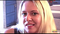 Hottie with blonde hair gets interviewed and fucked on the couch