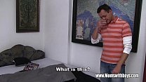 Young Stud Fucks His Mature Maid Catching Him With Porn