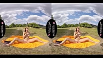 Solo fucking doll Lady Dee outside while the sun's rays caress her masturbates in VR.