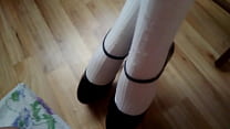 Шлюшка в одних чулочках показывает свои большие сладкие сисечки
