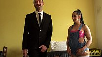 Casting couch of a big boobed french babe in fishnet stocking hard banged
