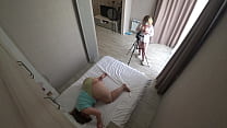 Hidden camera spy on two mature BBWs behind the scenes. Chubby girlfriends shoot sex tape at home on the bed. Fetish.